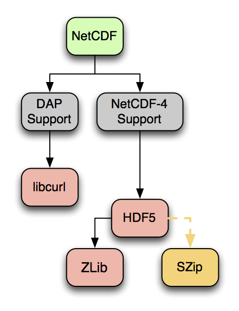 | Enable/Disable netCDF-4 | –enable-netcdf-4 –disable-netcdf-4 | -D"ENABLE\_NETCDF\_4=ON" -D"ENABLE\_NETCDF\_4=OFF" |